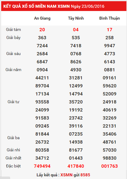 Đầu tiên là kết quả xsmb hom nay dành cho những bạn muốn xem lại kết quả xo so miền nam ngày hôm qua tại bảng cập nhật dưới đây :