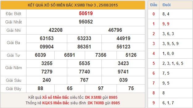 Nhận KQXS miền Bắc DK XSMB (nhận KQXS MB) gửi 8985